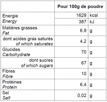 | Informations nutritionnelles |