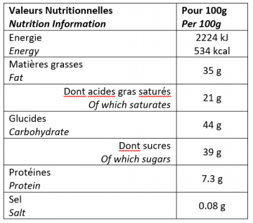 | Informations nutritionnelles |