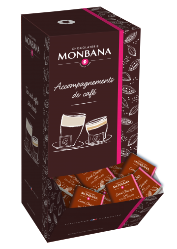 La boîte distributrice de 200 carrés lait 33% de cacao