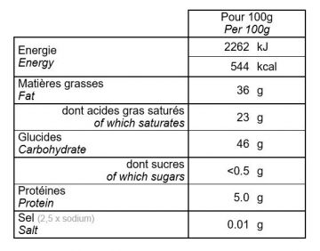 | Informations nutritionnelles |