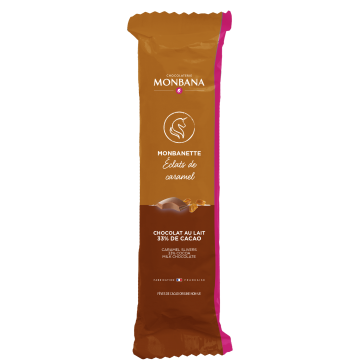 Barre au chocolat au lait 33% aux éclats de caramel beurre salé d'Isigny (AOP).